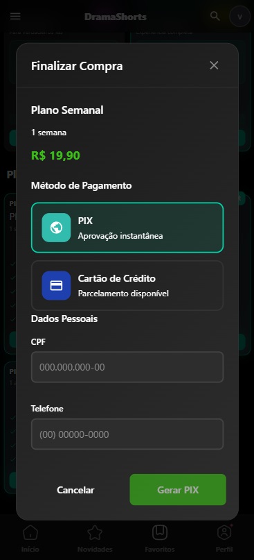 A plataforma conta com diversos recursos avançados, como visualização de capítulos, shorts, compartilhamento, perfil do usuário, planos, sistema de compras, busca inteligente e muito mais, tudo pensado para maximizar engajamento e conversão.