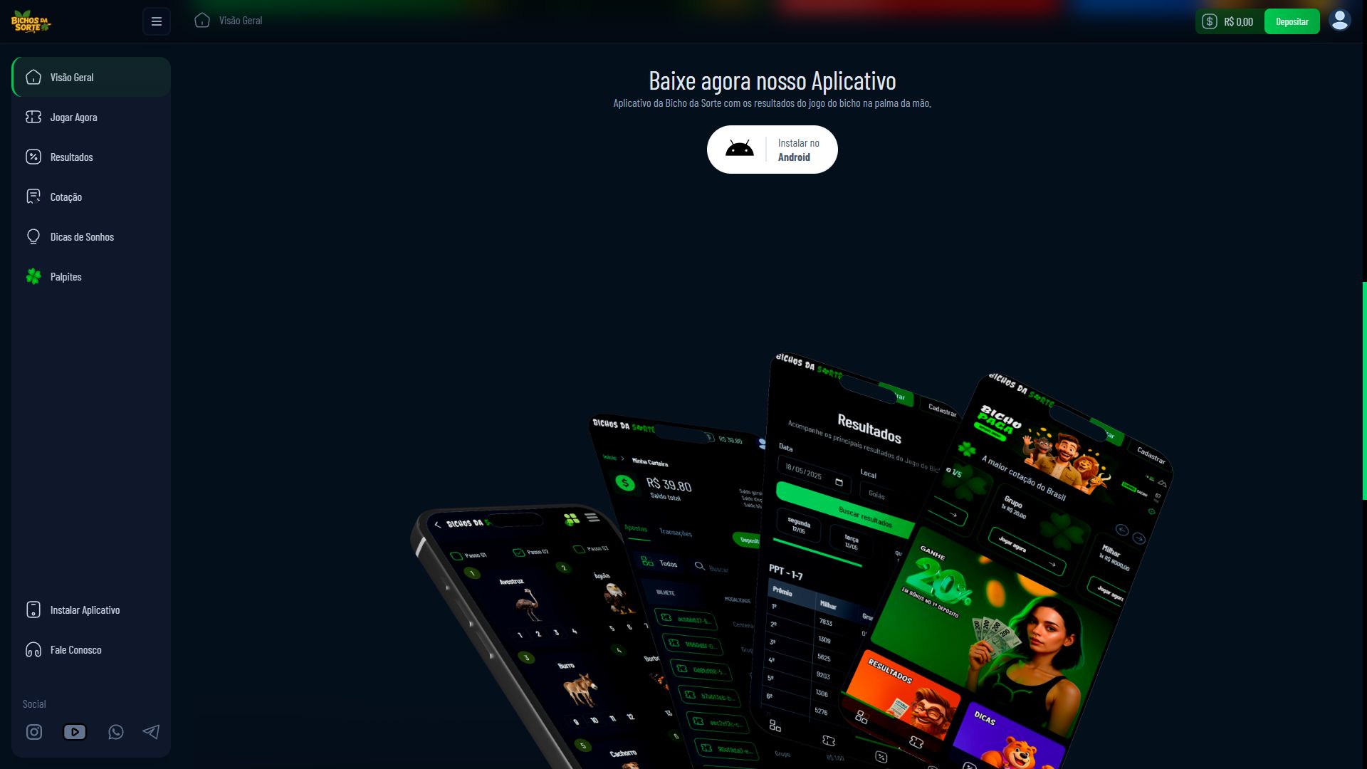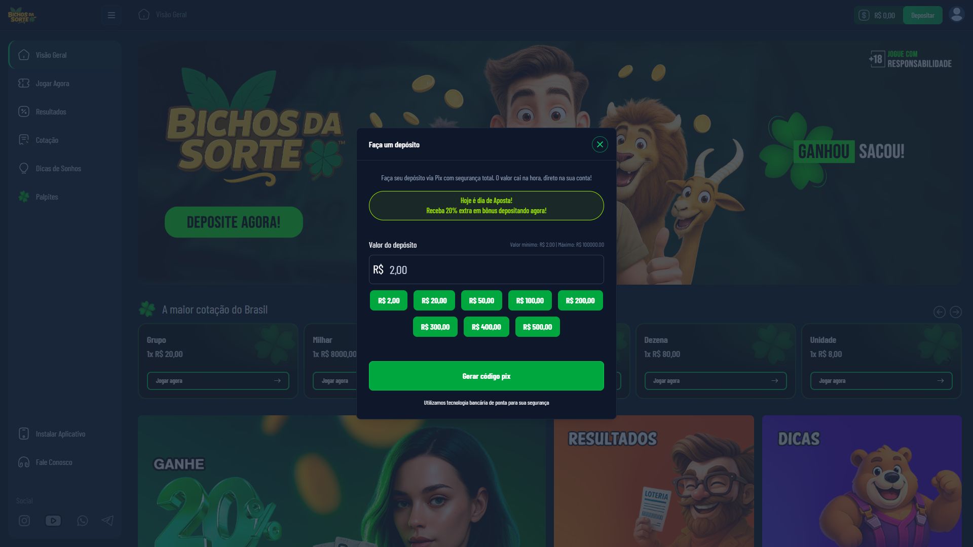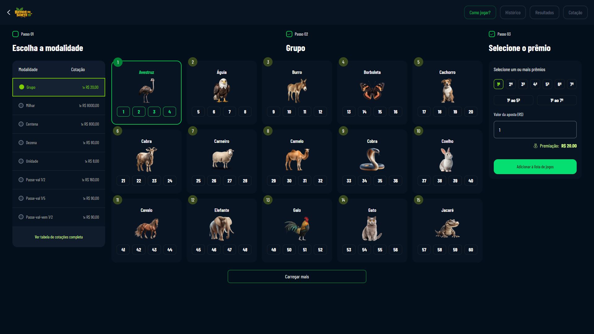 A plataforma atua como Banca do Bicho online, oferecendo apostas para as principais loterias, como:
