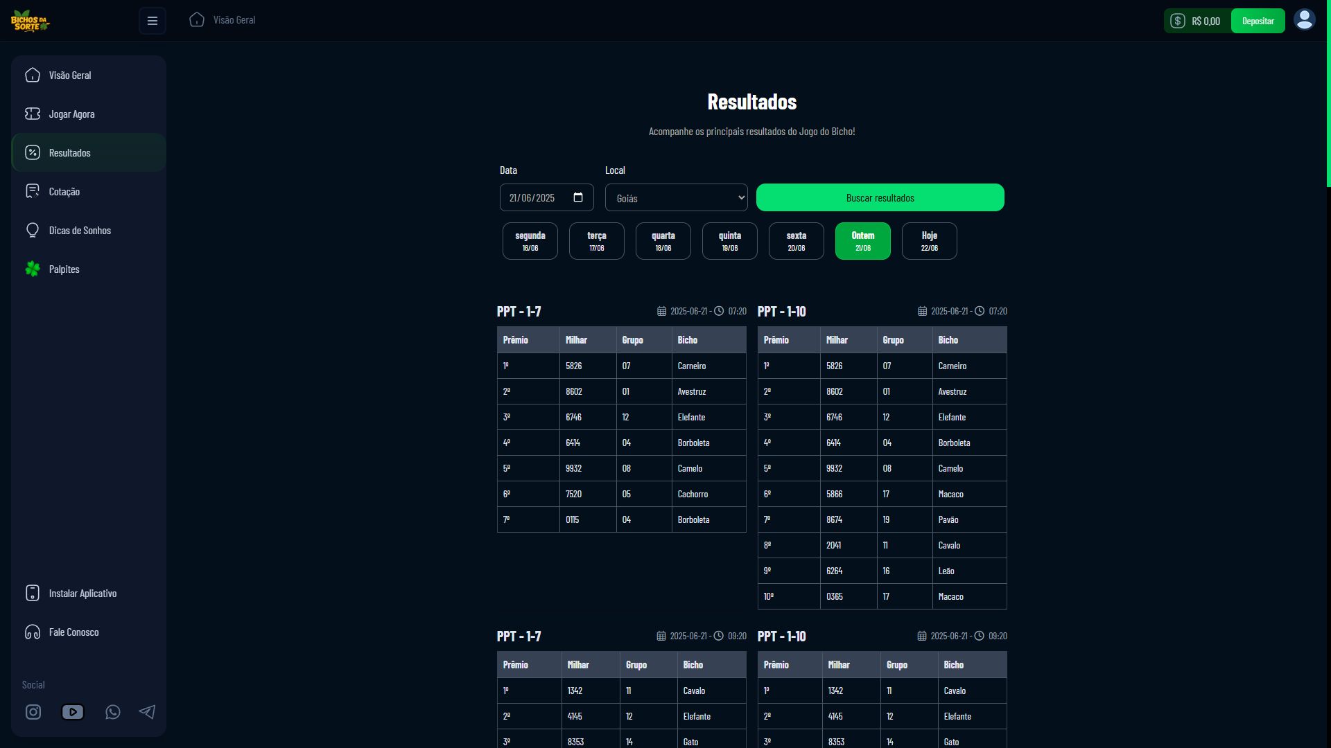 A plataforma realiza a baixa automática das apostas entre 10 e 30 minutos após o fechamento, atualizando os resultados de forma automática e exibindo-os na seção “Deu no Poste”.
