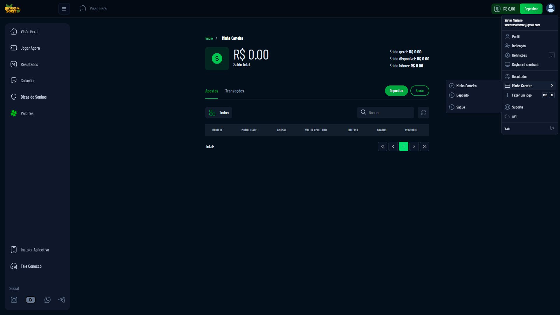 Visualize históricos, carteiras, apostas, ganhos, saques, bloqueios e edições de usuários.