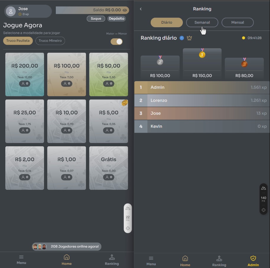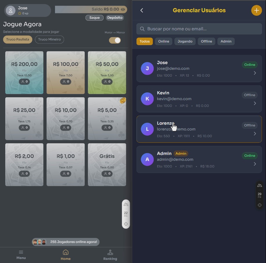 An online Truco platform developed with Nuxt 3 on the frontend and Node.js on the backend, delivering a smooth, intuitive, and highly engaging multiplayer experience.