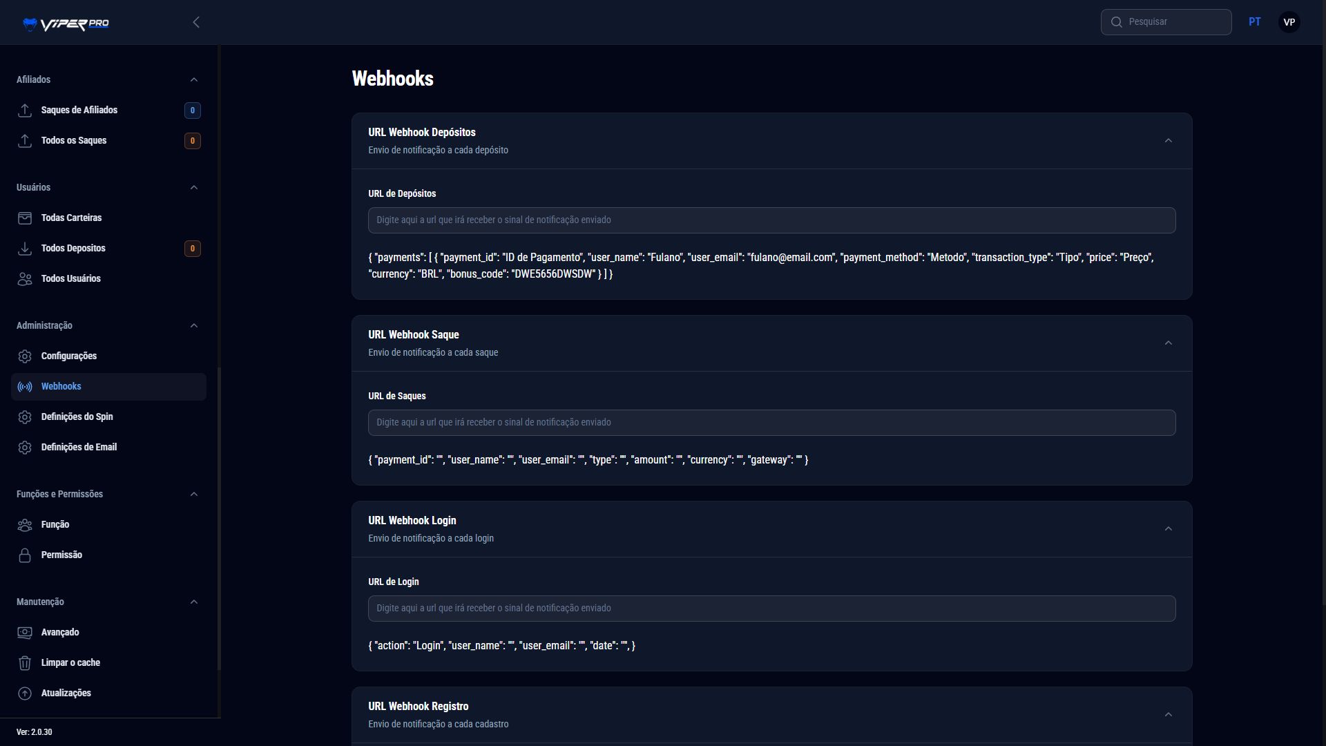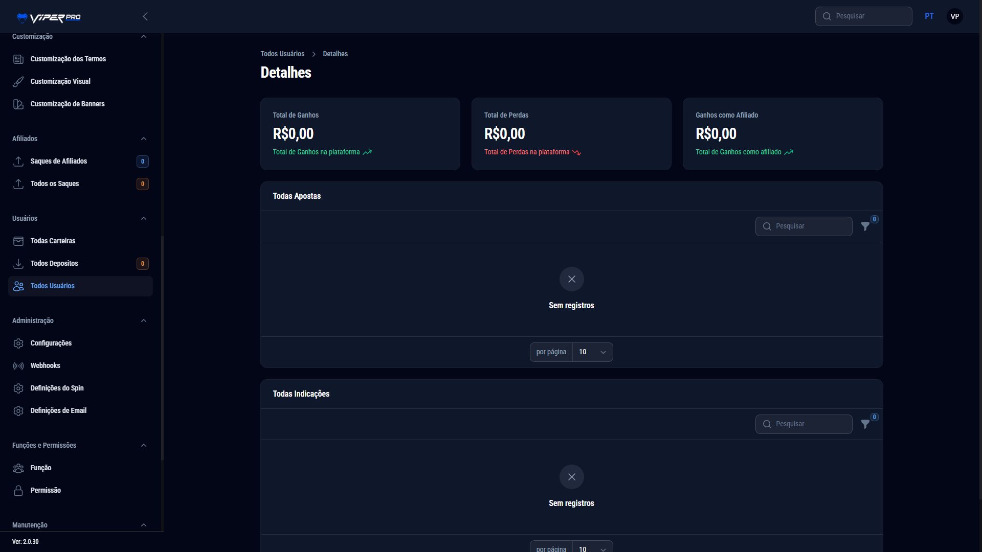 A new affiliate results section has been added to the admin panel, displaying wallet balance, number of referrals, total deposits, number of deposits, total withdrawals, and the house’s gross revenue.